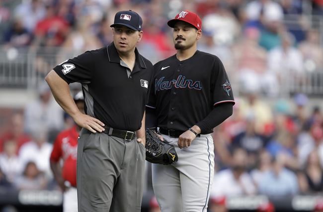 ATLANTA (AP) — Marlins starter Pablo López insisted he wasn't trying to plunk Ronald Acuña Jr. The umpiring crew didn't agree.