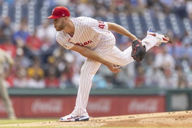 Jose Alvarado got the final out of the eighth in relief of Zack Wheeler but allowed three of the first four batters to reach in the ninth, including an RBI double by Fernando Tatis Jr. Ranger Suarez (4-2) came in and allowed a two-run double to Jurickson Profar.