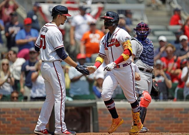 Will Smith (3-5) pitched the 10th for the win. Acuña also hit a two-run homer off Zach Thompson in the third.