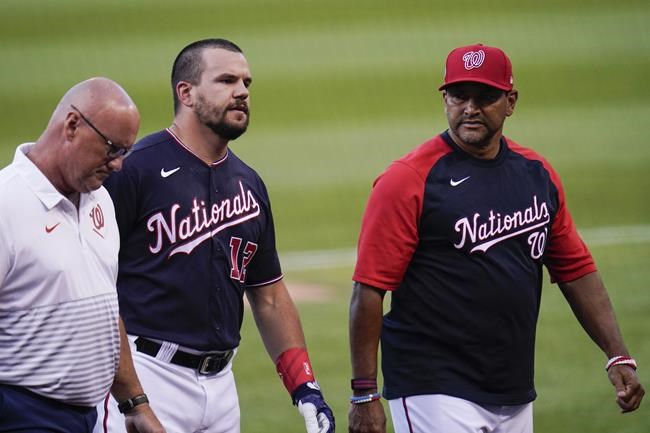 The Nationals put Schwarber on the 10-day injured list after he hurt himself running out a hit Friday night. There is no timetable for his return.