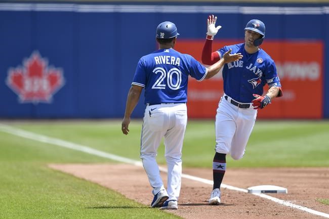 Randal Grichuk hit his 15th homer for Toronto in the second. Bo Bichette had two of Toronto’s six hits as the Blue Jays fell four games behind the second-place Rays in the AL East standings.