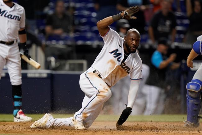 MIAMI (AP) — Automatic runner Starling Marte advanced to third on Blake Treinen’s wild pitch and continued home when catcher Will Smith threw wildly past third base for a game-ending error in the 10th inning, giving the Miami Marlins a 2-1 win over the Los Angeles Dodgers on Tuesday night.