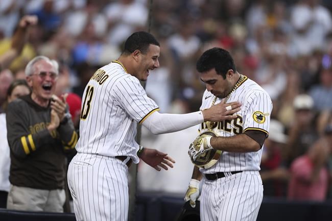 The rookie reliever hit a stunning grand slam off Washington ace Max Scherzer and his hometown San Diego Padres overcame an eight-run deficit, finally beating the Nationals 9-8 Thursday night on Trent Grisham’s RBI single in the ninth inning.