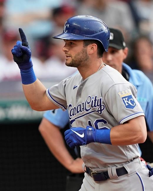 Royals: 1B Carlos Santana injured his left wrist in the first inning but remained in the game. Third baseman Hunter Dozier’s throw on a bunt hit pulled Santana into the path of Hernández. Santana was checked by a trainer.