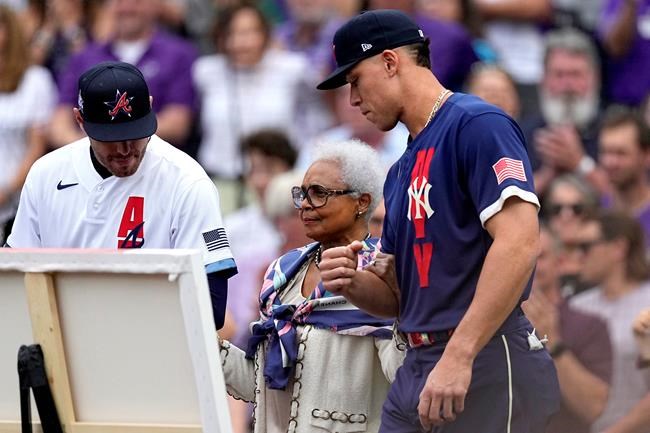 Aaron died on Jan. 22 at age 86. Billye, the wife of the record 25-time All-Star, was accompanied to home plate by the Braves’ Freddie Freeman and the Yankees’ Aaron Judge.