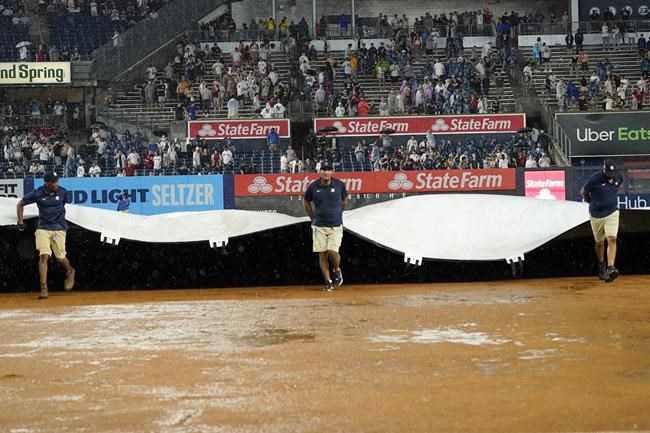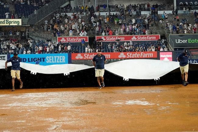The game was delayed by rain for a second time moments after Cole took the mound for the seventh, and called following a 54-minute delay that included lightning and heavy showers.