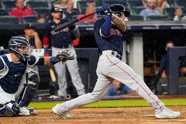 Play also was halted before the Yankees took a 3-1 lead when a fan threw a ball at Boston left fielder Alex Verdugo and hit him in the back.