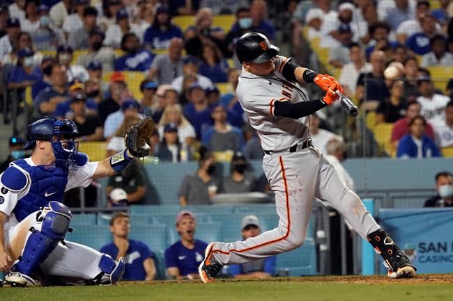 LOS ANGELES (AP) — Wilmer Flores hit a go-ahead, two-run homer off closer Kenley Jansen in the ninth inning and the San Francisco Giants rallied past the Los Angeles Dodgers 4-2 on Wednesday night.