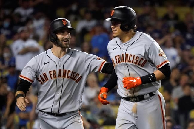 Mike Yastrzemski homered early to help the Giants regain a two-game lead in the NL West over the defending World Series champions. San Francisco has won two of three in a four-game series between the longtime rivals that wraps up Thursday night.