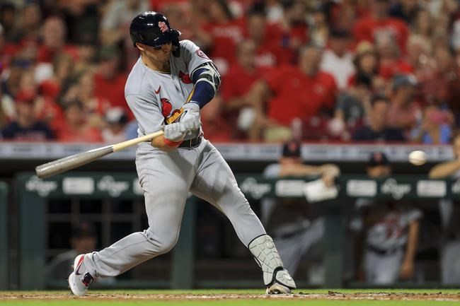 Joey Votto also had three hits for the Reds, who shook off long home runs by Paul Goldschmidt and Harrison Bader to maintain their hold on second place in the NL Central.