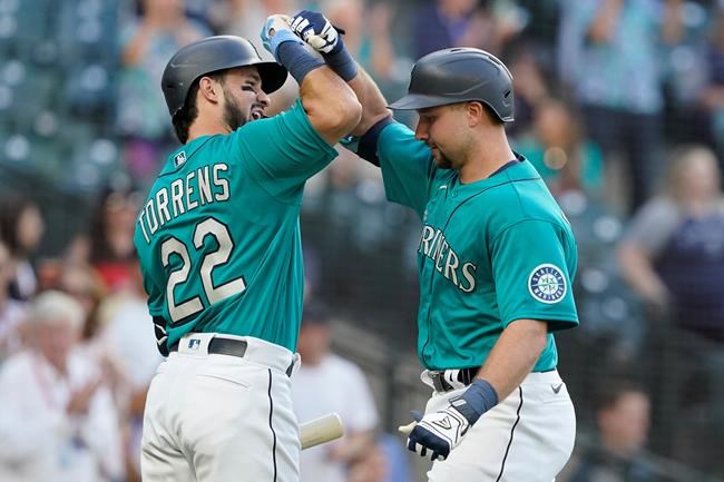 SEATTLE (AP) — Cal Raleigh and Luis Torrens hit back-to-back homers, Dylan Moore scored the go-ahead run on consecutive wild pitches and the Seattle Mariners beat the Oakland Athletics 4-3 on Friday night.