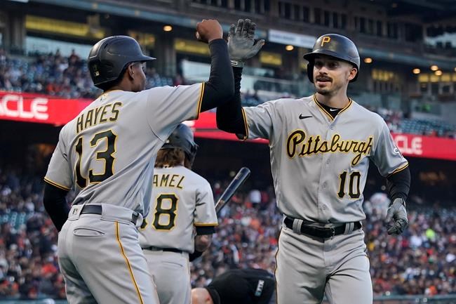 “You don’t score three runs very often without a hit. It’s a testament to our group,” Pirates manager Derek Shelton said. “We had given up two runs, given up the lead and they came right back. These guys get after it. They made something happen without getting a hit and we ended up winning.”