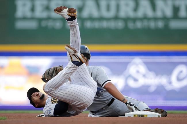 Milwaukee scored twice in a fourth-inning rally that featured a throwing error by Collins and a pair of walks, including one to Willy Adames with the bases loaded.
