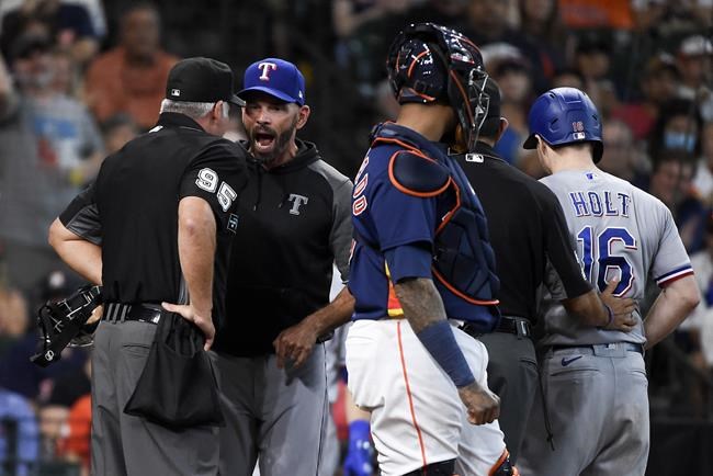 Rangers 3B Brock Holt and Woodward were ejected by home plate umpire Tim Timmons in the fifth after arguing a called third strike.