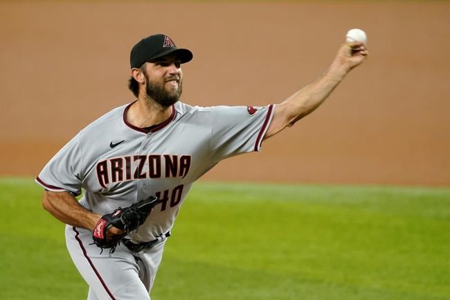 ARLINGTON, Texas (AP) — Madison Bumgarner pitched four-hit ball over seven innings to win for the first time in 2 1/2 months and the Arizona Diamondbacks beat the Texas Rangers 3-2 on Wednesday night, after both last-place teams scratched their top hitters from the starting lineups.