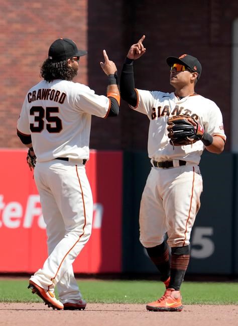 SAN FRANCISCO (AP) — Brandon Crawford doubled home two runs in his first at-bat after coming back from a left oblique strain and the majors-leading San Francisco Giants beat the Los Angeles Dodgers 5-0 Thursday in the rubber match of a three-game series.