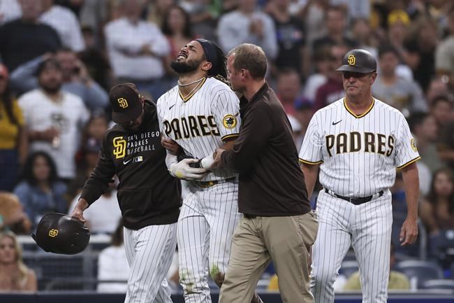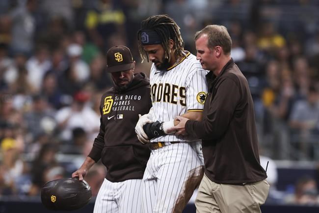 SAN DIEGO (AP) — Star shortstop Fernando Tatis Jr. of the San Diego Padres appeared to injure his left shoulder sliding awkwardly into third base in the first inning against the Colorado Rockies on Friday night and left the game.