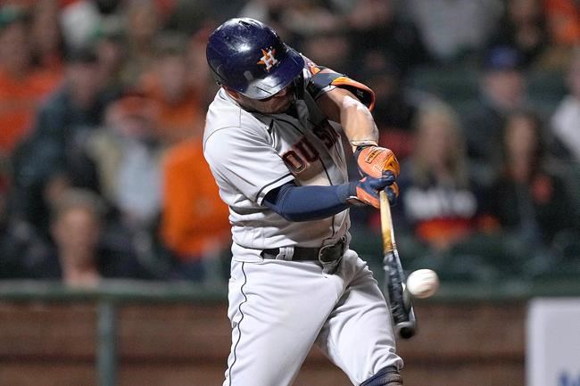 SAN FRANCISCO (AP) — The Houston Astros and San Francisco Giants both have 64 wins, tied for most in the majors.