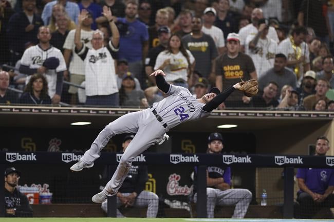 SAN DIEGO (AP) — Star shortstop Fernando Tatis Jr. left Friday night’s game in the first inning with a partially dislocated left shoulder and his San Diego Padres lost 9-4 to the Colorado Rockies, who were led by Ryan McMahon’s grand slam and Jon Gray’s solid outing.