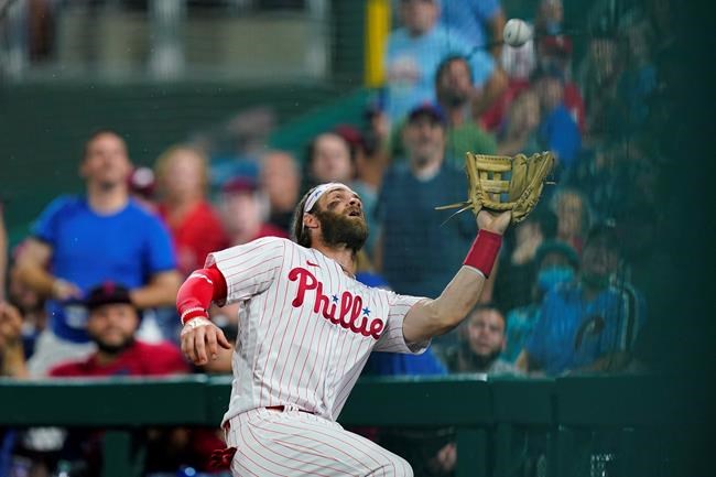 They could have more pressing concerns: All-Star catcher J.T. Realmuto left in the first inning after he took two foul tips to his mask. Realmuto was checked on by team trainers but stayed in the game to catch the rest of the inning. Andrew Knapp pinch-hit for Realmuto, batting .268 with 13 home runs and 52 RBIs, in the first and caught the rest of the game.