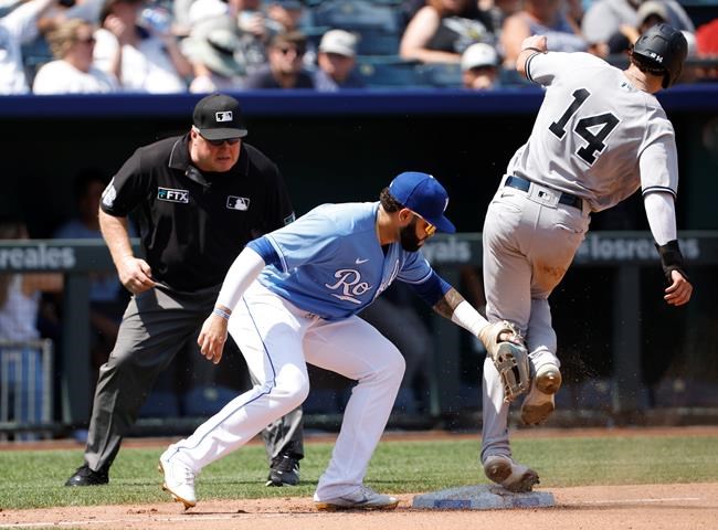 KANSAS CITY, Mo. (AP) —- Luke Voit had a two-run single in New York’s three-run first inning and the Yankees beat Kansas City for their 12th straight series victory over the Royals.