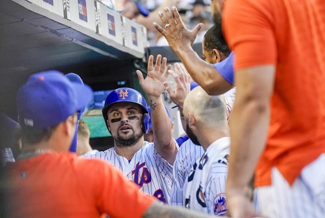 Pete Alonso broke out of an 0-for-21 slump with three hits, including an RBI double off the center-field fence that pulled the Mets to 7-6 in the seventh. New York tied it on a throwing error by 6-foot-7 rookie reliever Mason Thompson (0-1) in the eighth and snapped a season-worst four-game slide, winning for only the third time in 12 games.