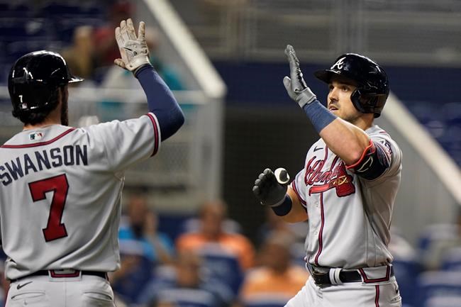MIAMI (AP) — Freddie Freeman and Adam Duvall homered in a seven-run fourth inning, and the surging Atlanta Braves beat the Miami Marlins 12-2 on Monday night.