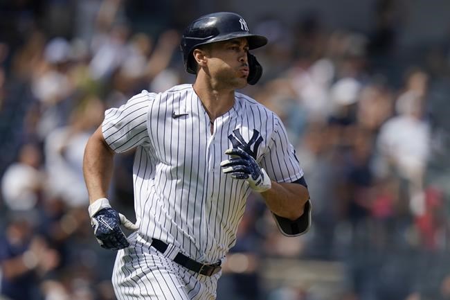 Giancarlo Stanton and the New York Yankees go for a three-game sweep of Boston after winning both games of a day-night doubleheader Tuesday to move percentage points ahead of the rival Red Sox for an AL wild-card spot.