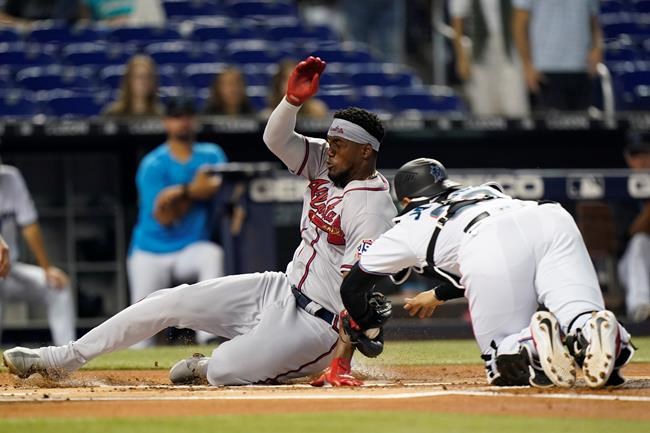 Freeman’s triple began a four-run fourth against Miami starter Jesús Luzardo. Riley hit an RBI single and Dansby Swanson followed with a single. Luzardo then walked three consecutive batters, including Duvall and Guillermo Heredia with the bases loaded, to force in two runs. Ozzie Abies’ sacrifice fly off Miami reliever Steven Okert made it 4-0.