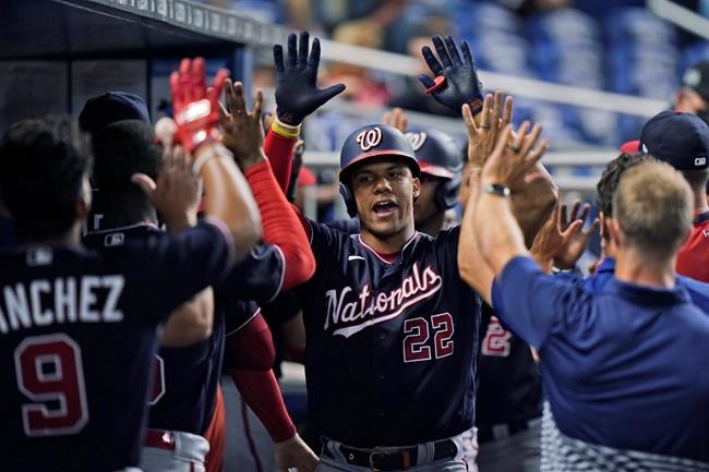 Washington’s Juan Soto hit his 21st homer, a two-run shot. The blast was measured at 114 mph, the hardest hit in the young slugger’s career.