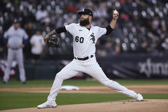 Chicago White Sox starter Dallas Keuchel pitches during the first inning of the team's baseball game against the Seattle Mariners on Wednesday, April 13, 2022, in Chicago. (AP Photo/Paul Beaty)