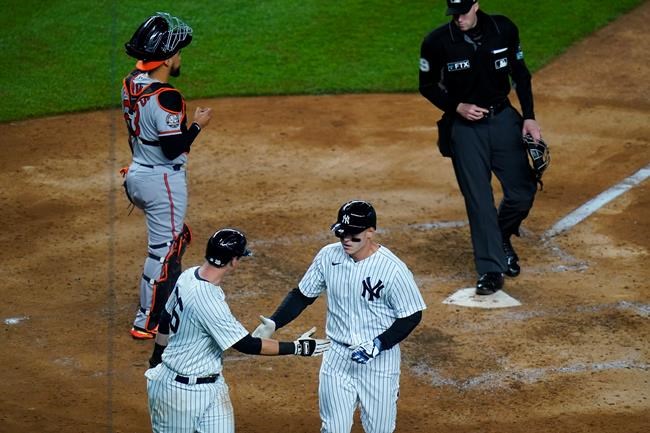 Luis Severino (2-0) pitched a no-hitter into the sixth inning for New York before Jorge Mateo’s one-out single, and Anthony Santander followed a few batters later with a three-run homer that set off a homer-filled finish.