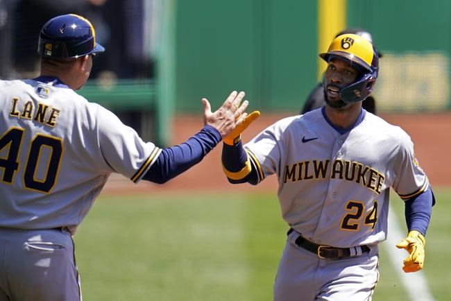 Christian Yelich started the Brewers’ rally with a one-out, pinch-hit bunt single against closer Chris Stratton (0-1). Kolten Wong and Omar Narvaez followed with singles to load the bases for McCutchen. The 35-year-old’s liner seemed to graze the outstretched glove of second baseman Josh VanMeter before rolling into right field, allowing Yelich and Wong to score.