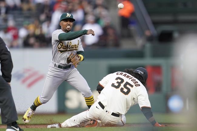 SAN FRANCISCO (AP) — Paul Blackburn and five relievers combined on a three-hitter, making Chad Pinder’s leadoff homer stand up for the Oakland Athletics in a 1-0 victory over San Francisco that ended the Giants’ five-game winning streak Wednesday night.