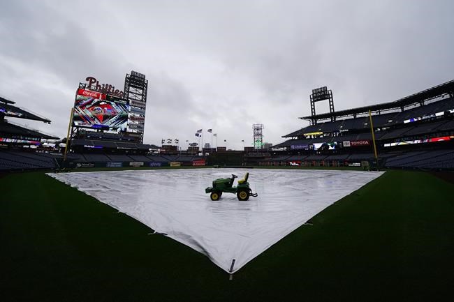 PHILADELPHIA (AP) — For the second straight day, the game between the New York Mets and Philadelphia Phillies was postponed due to rain. Saturday’s game will be made up as part of a single-admission doubleheader on Sunday.