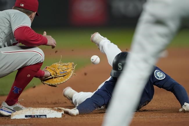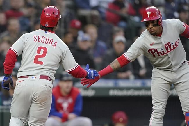 Nick Castellanos, Rhys Hoskins and Jean Segura had solo homers for Philadelphia, which has lost six of eight. Phillies manager Joe Girardi was ejected in the second inning for arguing when the Mariners’ Adam Frazier was called safe after inadvertently knocking the ball out of first baseman Hoskins’ glove on a play that led to a Seattle run.