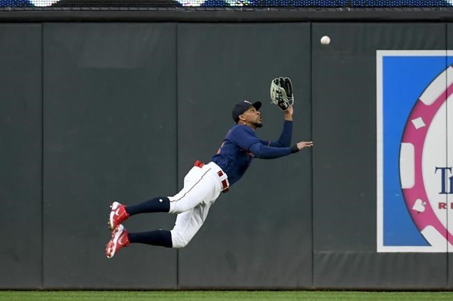 Twins center fielder Byron Buxton made a vintage leaping catch as he fully extended following a long sprint to grab a line drive as he landed at the warning track to take an extra-base hit away from Jeimer Candelario in the fourth inning. Gray raised both arms to celebrate Buxton’s snag.