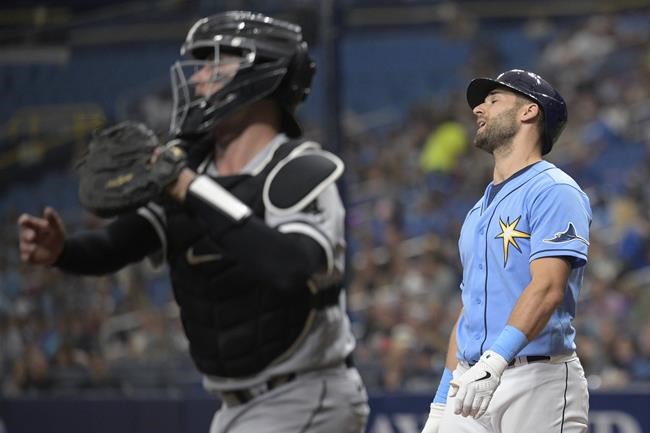 Yandy Díaz opened the sixth with a single and Ji-Man Choi reached when Grandal was charged with an error for mishandling a throw from shortstop Danny Mendick. Then Harold Ramirez hit a sacrifice fly and Randy Arozarena had an RBI triple before Mike Zunino connected on a two-out, two-run homer.