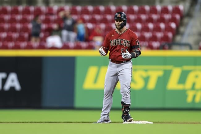Diamondbacks: Scheduled to start LHP Madison Bumgarner (2-5, 3.64 ERA) in the opener Friday of a weekend series at Philadelphia. Bumgarner pitched four innings against the Reds on Monday, allowing four runs and eight hits. RHP Zack Wheeler (4-3, 3.14 ERA) is the probable starter for the Phillies. Wheeler surrendered two runs and six hits through six innings with nine strikeouts in beating the Los Angeles Angels on Saturday.