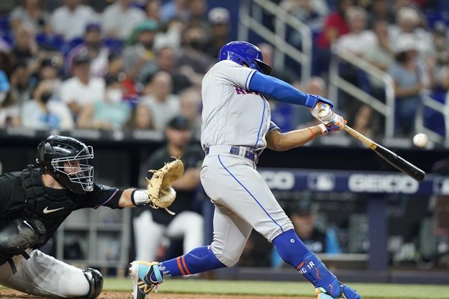 MIAMI (AP) — Francisco Lindor homered, doubled and drove in four runs to lead the New York Mets past the Miami Marlins 5-3 on Friday night.