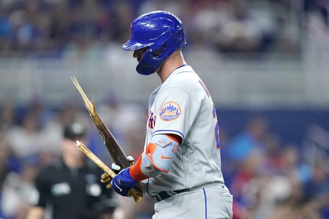 Alonso’s home run over the left-center field wall against Miami reliever Jimmy Yacabonis (0-1) snapped a 3-3 tie. It was Alonso’s NL-leading 22nd homer of the season and 14th multihomer game of his career