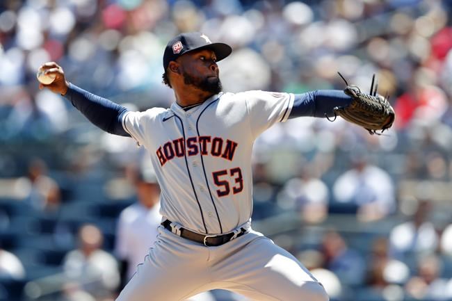 NEW YORK (AP) — Houston’s Cristian Javier held the New York Yankees hitless through seven innings Saturday before handing a 2-0 lead over to the Astros bullpen.