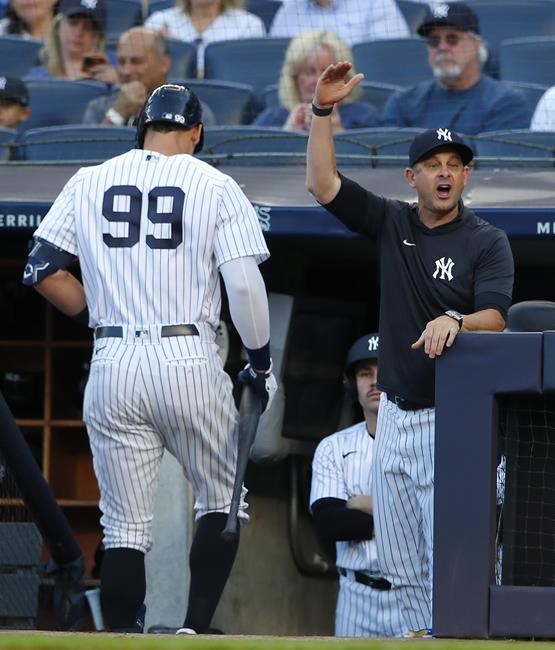 Boone was ejected in the eighth for arguing with plate umpire Stu Scheurwater in what the manager said was the accumulation of called strikes on 6-foot-7 Aaron Judge he thought were below the zone. “Hopefully, everyone’s paying attention,” Boone said.