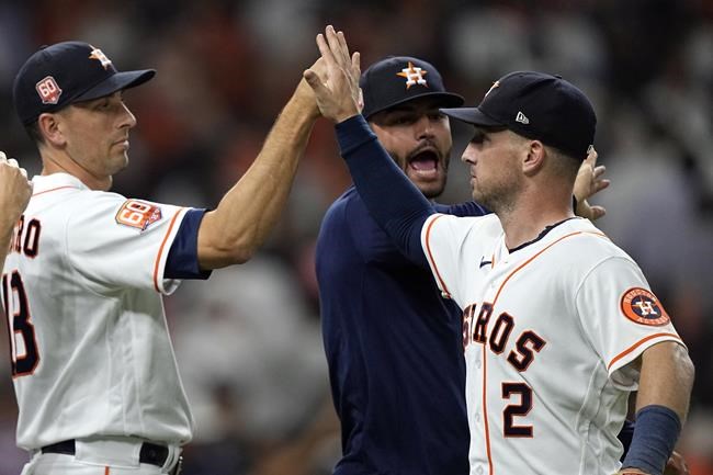 Houston starter Luis García (6-5) allowed three hits and one run with six strikeouts in 5 1/3 innings for his third straight win. Ryan Pressly struck out two in a scoreless ninth for his 17th save.