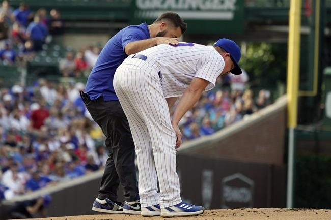 CHICAGO (AP) — Chicago Cubs pitcher Alec Mills left Saturday’s game against the Boston Red Sox due to lower back pain after throwing just seven pitches.