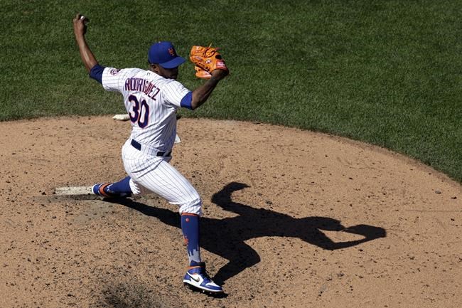 Edwin Díaz got three outs for his 18th save in 21 tries. With two runners on, he whiffed Mitch Garver and got Leody Taveras on a fly ball to end it.