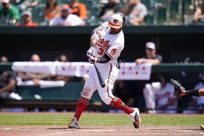 BALTIMORE (AP) — Jorge Mateo limped to first base when Matt Moore hit him near the left knee with the bases loaded in the 10th inning, and the Baltimore Orioles reached the season’s halfway point by coming from behind late to beat the Texas Rangers 7-6 Monday.