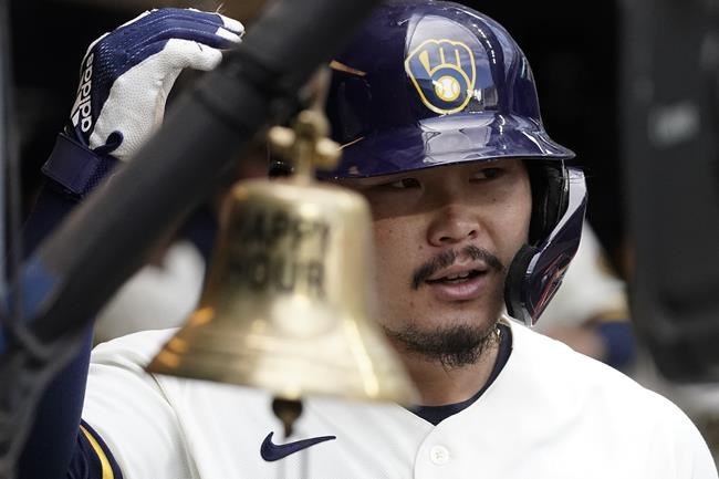 Keston Hiura homered for the Brewers and made a superb catch in left field, where he made a rare start.