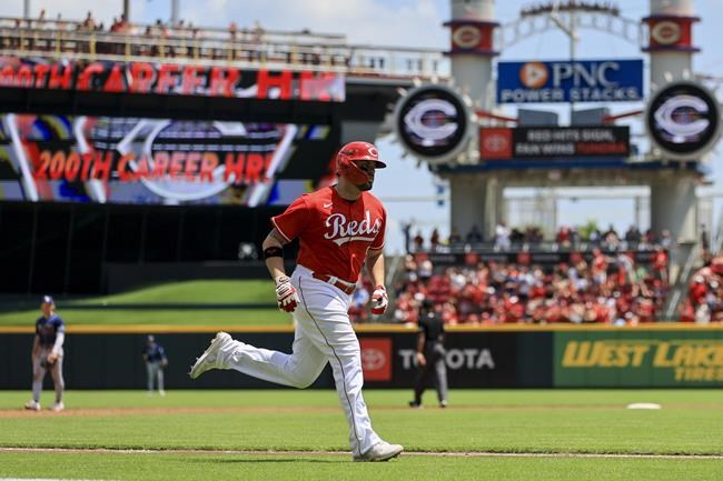 Moustakas reaches 200 homers, Reds finish sweep of Rays