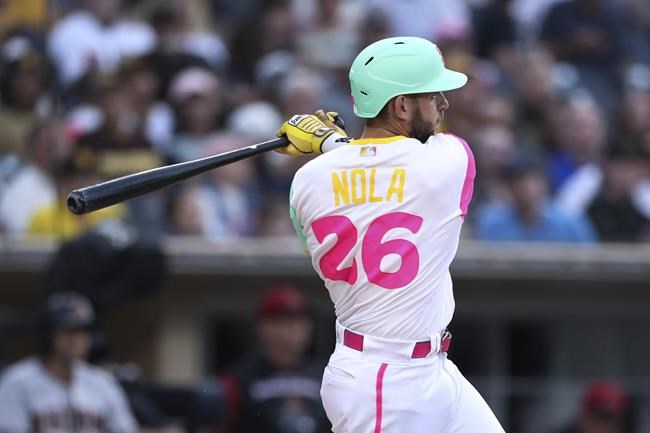 San Diego answered with three runs off Madison Bumgarner (5-9) in the second. Nola drove in two with a double down the left-field line and scored from third on Esteury Ruiz’s single two batters later.